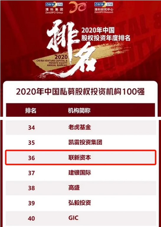 2020年10月15日,由清科集團、投資界主辦的 “2020年中國股權投資年度排名”隆重揭曉。聯(lián)新資本再次獲得“2020年中國私募股權投資機構(gòu)50強”。